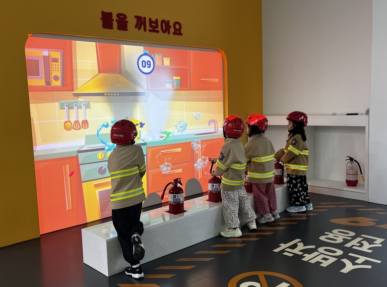 오후 프로그램은 안전교육관으로 이동해 가정, 유치원, 우리 동네 등 우리 주변에서 일어날 수 있는 화재나 교통사고, 지진 등 다양한 위험 상황 속에서 스스로를 안전하게 지키는 방법을 체험을 통해 배우게 된다.