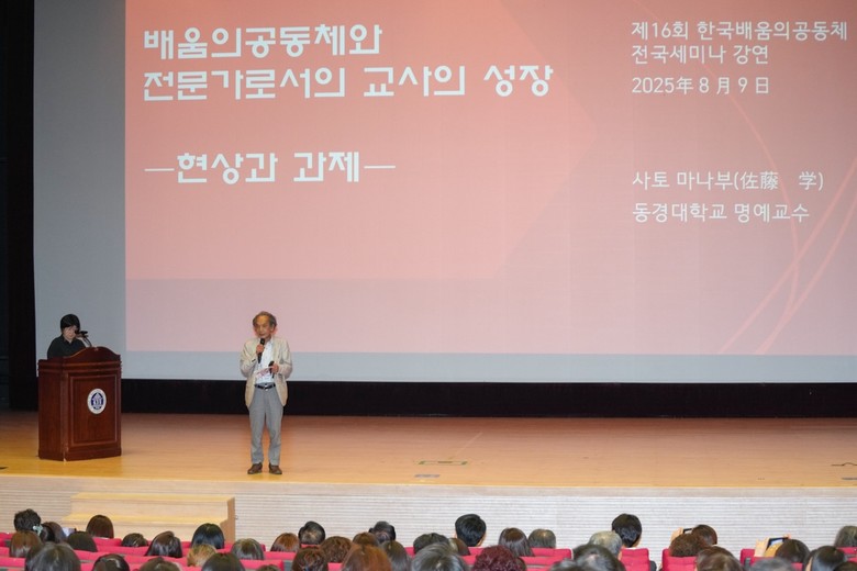 특히, 사토 교수는 교사의 역할 변화를 강조하며 “19세기와 20세기 교사는 가르치는 전문가였지만, 21세기 교사는 배움의 전문가가 되어야 한다”라고 역설했다. 그는 배움의 전문가로서의 교사가 갖춰야 할 세 가지 소양으로 시민으로서의 교양, 교과의 학문적 교양, 교육학의 학문적 교양을 꼽았다. 더불어 아이들과 동료들로부터 배우는 자세를 가진 교사와 교육연구자를 육성하는 것이 중요하며, 이 같은 노력을 통해 교사가 교직에서 진정한 행복을 찾을 수 있다고 강조했다.