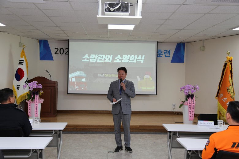 [전남 세계타임즈=우덕현 기자] 전라남도의회 임지락 의원(더불어민주당, 화순1)은 지난 3월 6일 화순소방서에서 열린 ‘2024년 직장교육훈련’ 강사로 초빙되어 ‘소방공무원의 소명의식’에 대해 특강을 진행했다.