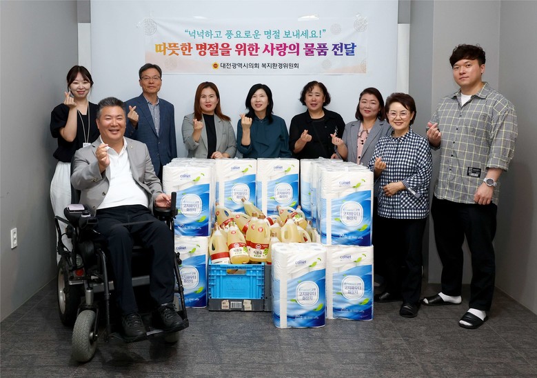 [대전 세계타임즈=이채봉 기자] 대전시의회 복지환경위원회(위원장 이효성)가 추석 명절을 맞아 26일 대전척수장애인협회를 방문해 휴지 등 생필품을 전달하고, 관계자들을 격려했다.