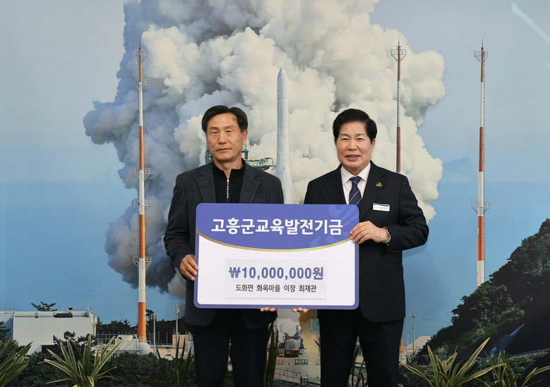 위원회에 따르면, 올해 초 풍양농공단지협의회와 재광광주골프포럼 등 다양한 단체의 기부에 이어, 23일에는 도화면 화옥마을 최재관 이장이 교육발전기금 1천만 원을 전달하며 지역 인재 양성을 위해 힘을 보탰다.