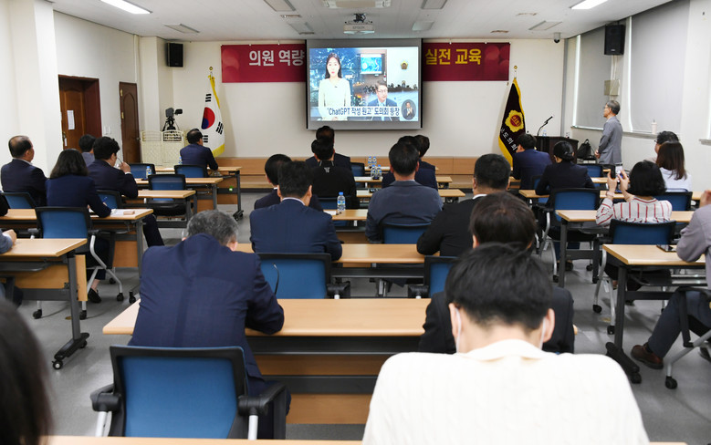 이번 교육은 최근 연일 언론 등에서 이슈가 되고 있는 오픈AI를 통해 최신 의정활동 트렌드를 반영하고 도민들을 위한 다양한 의정 활동에 활용하기 위해 추진된 자체 교육이다.