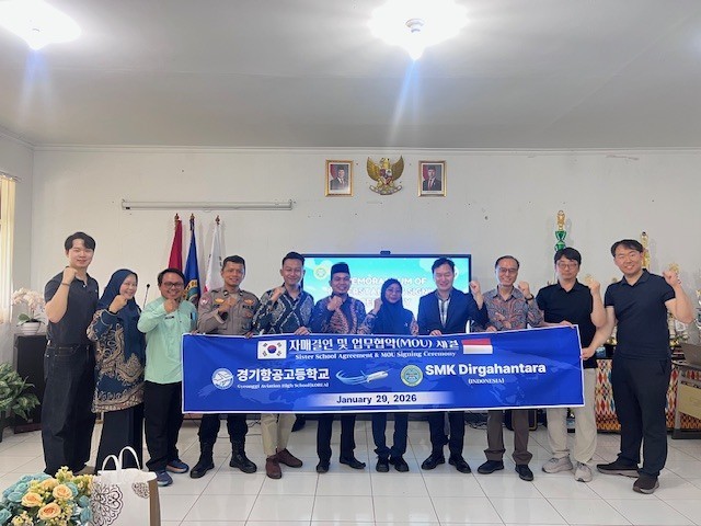 [광명시 세계타임즈=송민수 기자] 서울·경기 유일의 항공특성화고등학교인 경기항공고등학교(교장 유형진, 이하 경기항공고)는 2026년 1월 29일(목) 인도네시아 항공 특성화 직업계고등학교인 SMK Dirgantara에서 양교 간 항공 교육 협력 강화를 위한 국제교류 협력 양해각서(MOU)를 체결했다.