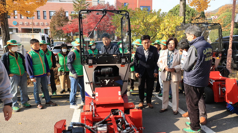 과천시는 제설브러시 트랙터를 지난해 6대에서 올해 9대로 3대 추가 확보하고, 자동 염화칼슘 살포기 3대, 송풍기 29대, 제설기 7대 등을 확보해, 대형 장비 접근이 어려운 마을 안길, 이면도로, 중심 상업지역 등 생활 도로 구간의 제설 효율을 높인다는 계획이다.