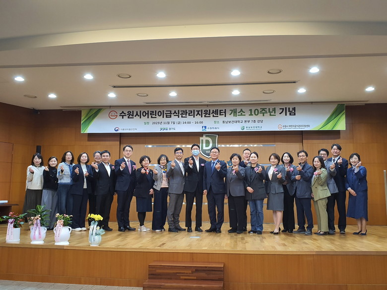 행사에는 식생활안전관리원, 동남보건대학교 관계자, 수원시의원, 어린이급식소 원장과 조리사 등이 참석해 지난 10년간의 성과를 공유하고, 우수 어린이급식소를 시상했다.