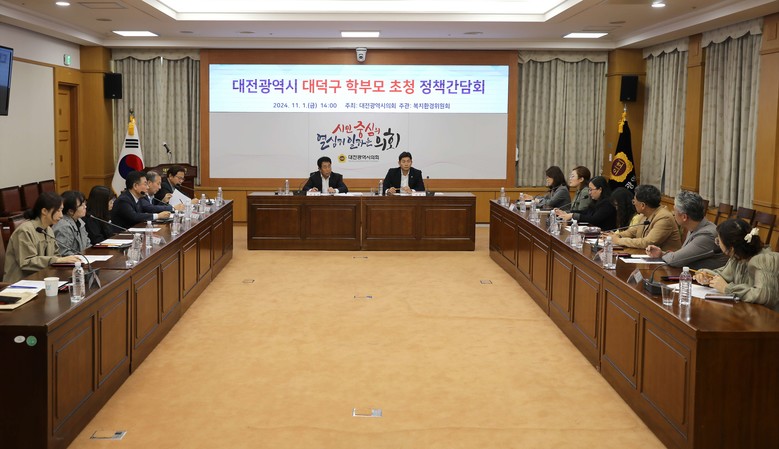 [대전 세계타임즈=이채봉 기자] 대전시의회는 1일 오후 2시 의회 소통실에서 ‘대전광역시 대덕구 학부모 초청 정책간담회’를 개최했다.