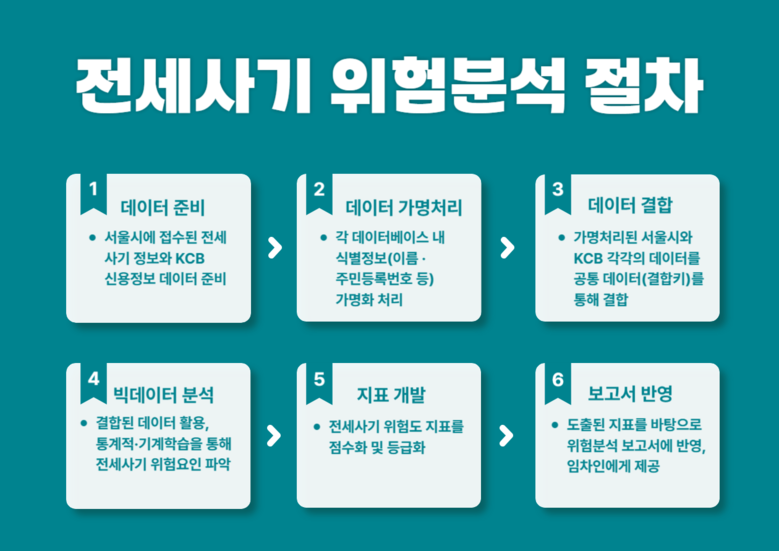 신용점수, 연체이력, 세금체납, 다주택 보유 여부, 주소 이동 등 지표가 반영되었으며, 머신러닝 분석을 통해 고위험 임대인을 사전에 식별하여 예비 임차인에게 ‘위험도 보고서’ 형태로 올해 내 대시민 서비스를 제공할 예정이다.