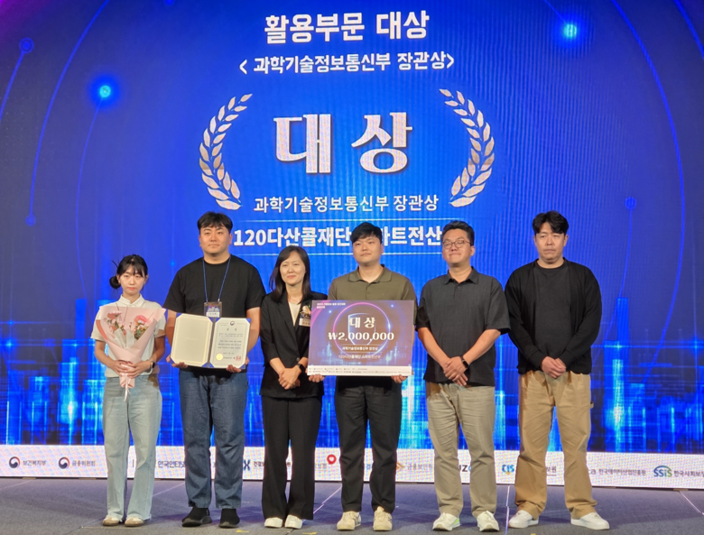둘째, AI 기반 민원공개 시스템(대상, 과학기술정보통신부 장관상)은 연간 300만 건에 달하는 120다산콜센터의 음성 민원 데이터를 STT(음성→텍스트)로 변환·가명처리해 AI 학습에 활용한 성과다.