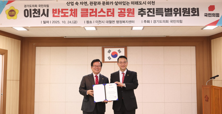 [경기도 세계타임즈=송민수 기자] 경기도의회 국민의힘(대표의원 백현종)은 24일 ‘이천시 반도체 클러스터 공원 추진특별위원회’를 출범하고 추진특별위원장에 허원(이천2) 의원을 임명했다.