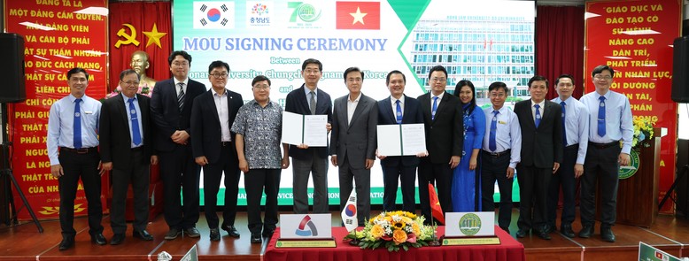 해외시장 개척 등을 위해 베트남 출장에 나선 김태흠 지사는 27일 호치민 농람대에서 열린 연암대-농람대 간 업무협약 체결식에 참석했다.