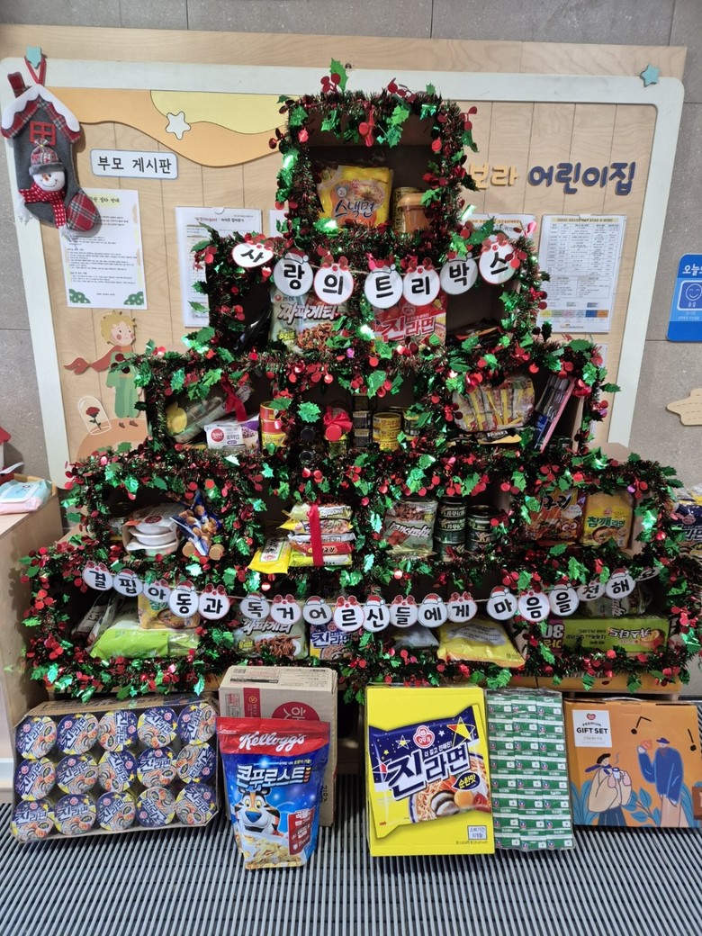 이번 기부금은 어린이집에서 이웃 돕기 성금 마련을 위해 진행한 밑반찬 판매 행사 수익금으로 조성됐으며, 사랑의 트리박스는 지역 내 아동과 독거 어르신에게 따뜻한 나눔을 전하고자 설치됐다. 트리박스에는 라면, 김, 햇반 등 생활에 필요한 다양한 식품이 담겼다.