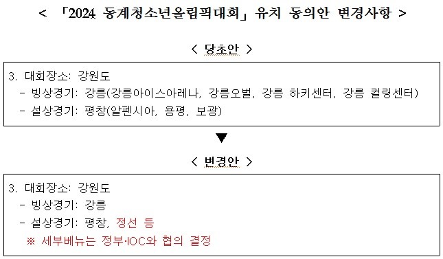금일 수정동의된 「2024 동계청소년올림픽대회」유치 동의안은 제1차 사회문화위원회(11월 11일)에서 심의하였으나 여러 위원들이 심도있는 논의의 필요성을 강조하여 계류하였던 안건이었다.