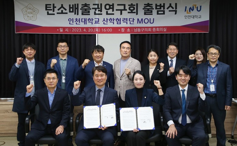 이날 출범식에는 대표 육은아 의원을 비롯해 소속 의원 5명(정재호, 전유형, 전용호, 정승환, 김은숙 의원)과 인천대학교 산학협력단 강희찬 교수(연구책임자), 남동구청 환경보전과 과장, 기업지원과 팀장 등 관계공무원 5명 등 총 20명이 참석한 가운데, 탄소배출연구회의 출범을 알리고 인천대학교 산학협력단과 연구개발 협력을 위한 업무협약을 체결하였다.