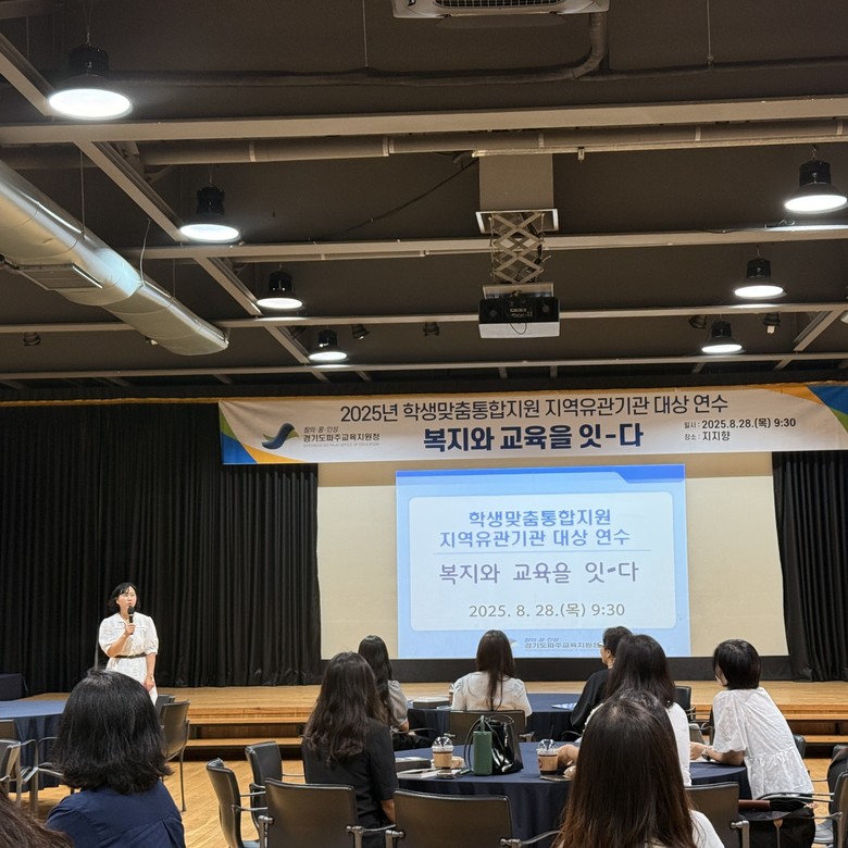 [파주시 세계타임즈=송민수 기자] 경기도파주교육지원청(교육장 전선아)은 8월 28일(목), 지역유관기관 대상으로 학생맞춤통합지원‘복지와 교육을 잇-다’라는 주제로 연수를 개최하였다.