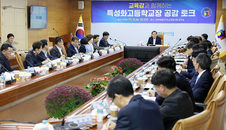 전북특별자치도교육청은 5일 본청 5층 회의실에서 ‘2024년 교육감과 함께하는 특성화고등학교장 공감 토크’를 개최했다.