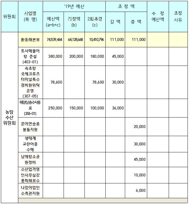 환동해본부 소관 제2회 추가경정예산안 심사결과는 다음과 같다