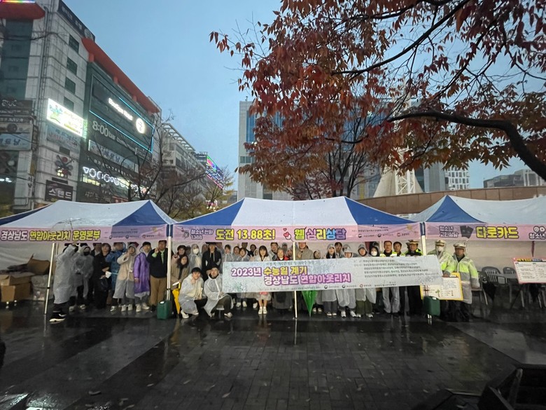 [세계타임즈]최성룡기자 = 경상남도일시청소년쉼터(소장 최문주)는 11월 16일, ‘23년 대학수학능력시험 종료 직후 위기청소년 및 거리배회 청소년 발굴을 위한 연합 아웃리치를 경상남도 청소년 밀집지역인 창원시 상남동 분수광장 일대에서 진행하였다.