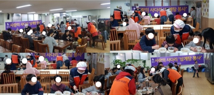 삼계탕 봉사를 총괄한 유희자 이사는 “방학기간에 아이들이 삼계탕과 닭죽을 맛있게 먹는 모습에서 행복과 보람을 느낀다.“고 말했다.