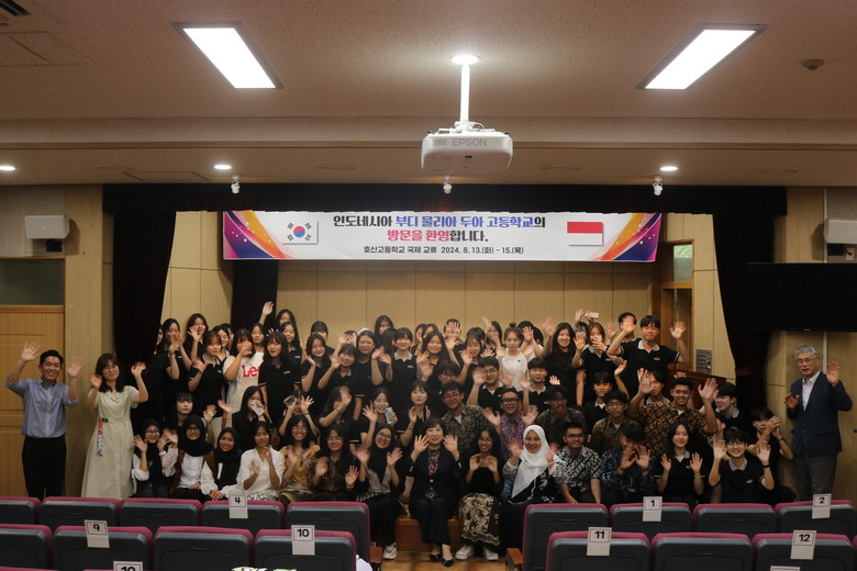 호산고는 2017년부터 인도네시아 부디 물리아 두아 고등학교와 MOU를 체결하고 격년으로 서로의 학교와 가정을 방문하며 교류를 이어왔으나, 코로나19로 인해 지난 4년간 비대면 교류를 실시하다가 올해 다시 대면 교류를 재개하였다.