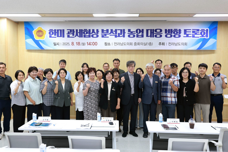 [전남 세계타임즈=우덕현 기자] 지난 8월 18일, 전라남도의회 중회의실에서 전라남도의회 진보당 오미화 의원(영광2)은 박형대 의원(장흥1)과 함께 「한미 관세협상 분석과 농업 대응 방향 토론회」를 개최했다.