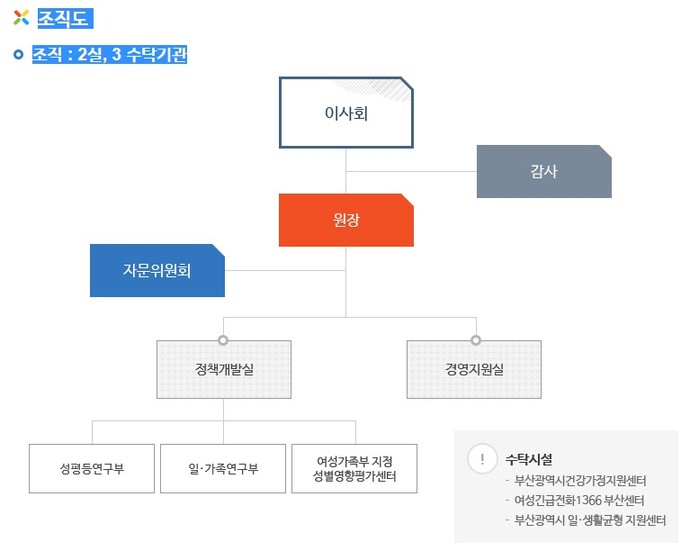 ※부산여성가족개발원 조직도(출처 : 부산여성가족개발원 홈페이지)