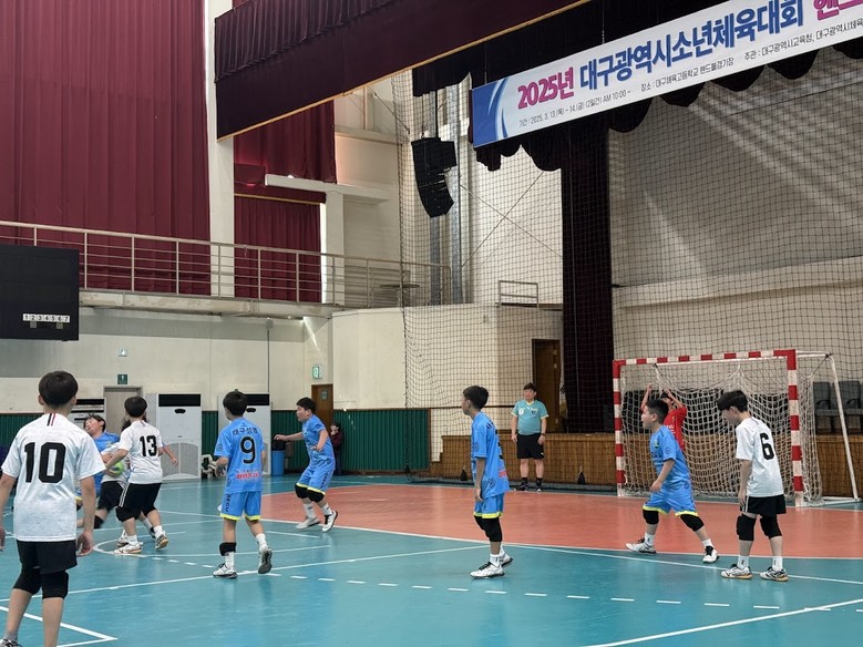 ‘2025년 대구광역시소년체육대회’는 3월 20일(목) ~ 3월 22일(토) 3일간 대구스타디움 육상경기장 등 종목별 경기장에서 개최되나 핸드볼 종목은 3월 13일(목) ~ 14일(금) 양일간 대구체육고등학교 핸드볼 사전 종목으로 경기를 치뤘다.