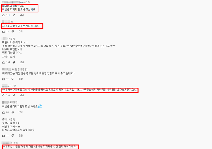 유투브로 전달된 영상을 본 사람들은 댓글을 통하여