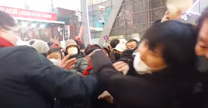 그 현장에서 윤후보를 지지하는 빨간 목도리의 당원들 및 검은 마스크의 사람으로부터 밀쳐지고 , 목이 조이고 넘어진 학생을 다시 들어 던지는 등의 폭력 적인 선거유세장이 시민들에게 보여졌다.