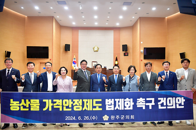 완주군의회는 정부가 농산물 가격 안정 제도를 법제화하고, 식량안보 강화 방안을 조속히 마련하여 지속 가능한 농업농촌과 대한민국을 보장할 것을 촉구했다.