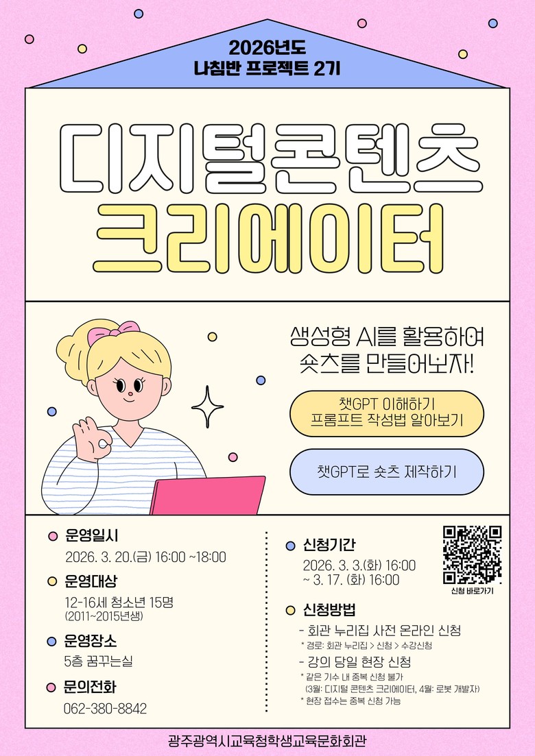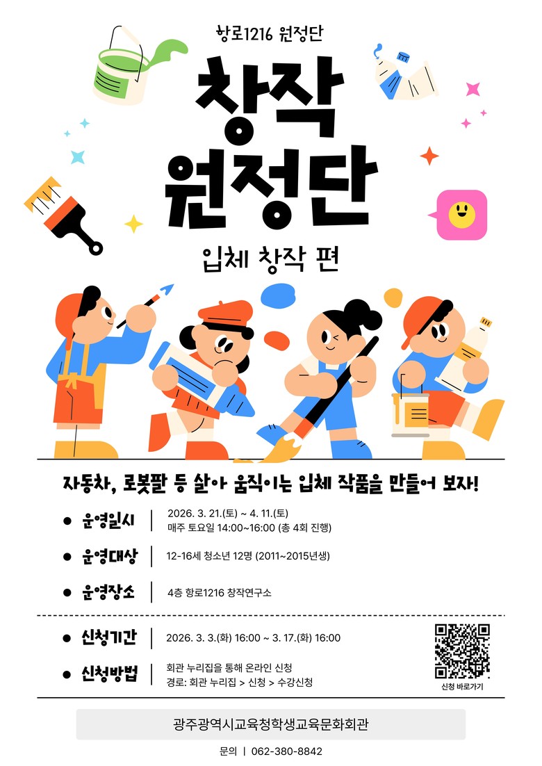 [광주 세계타임즈=손권일 기자] 광주광역시교육청학생교육문화회관(이하 학생교육문화회관)은 오는 3월 20일부터 회관 4층 항로1216에서 ‘항로1216 청소년 프로그램’을 운영한다.
