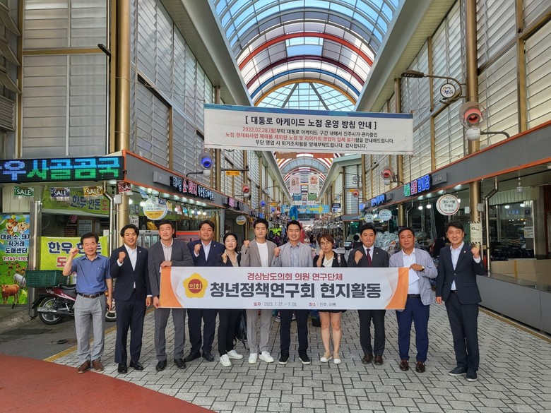 첫 일정으로 연구회는 진주시의회를 방문해 청년의원들과의 간담회를 가졌다. 이 자리에서 의원들은 최근 금리 인상에 따른 경기 악화와 외식업 창업에 대한 경험 부족으로 인한 폐업률 상승 등 상황 인식을 공유했다. 이후 진주 중앙시장 청년몰의 청년 상인들을 만나 애로사항을 청취하고 격려했다.