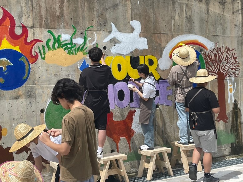특히, 기후 위기의 심각성을 알리기 위해 학교 뒤편 옹벽에 벽화 그리기 활동을 진행했다.