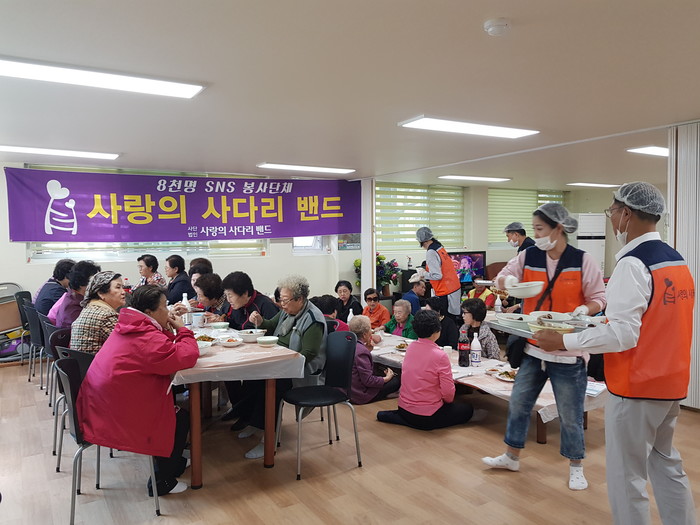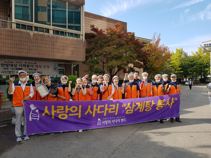 [대전=세계타임즈 이장성 기자] 대전시 SNS 봉사단체 사랑의 사다리 밴드(리더 이정제)는 24일, 오전11시, 서구 둔산동 향촌아파트 노인정에서 삼계탕 100그릇 봉사로 사회적 효행을 실천하였다.