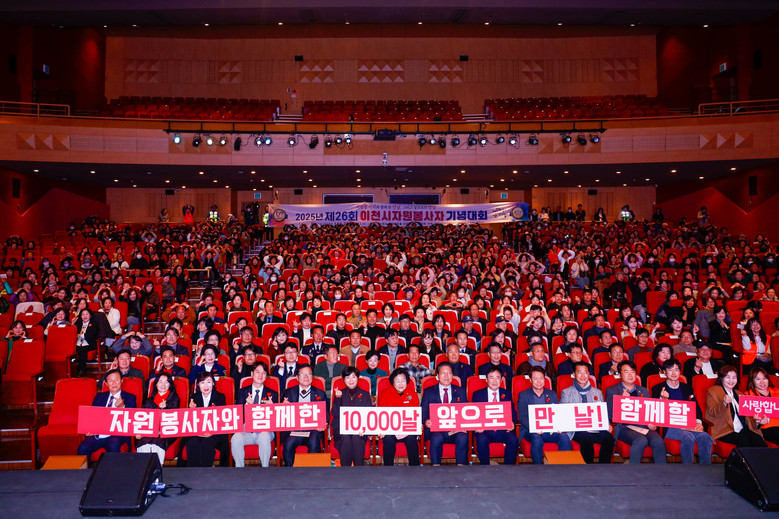[이천시 세계타임즈=송민수 기자] (재)이천시자원봉사센터(이사장 김경희, 이하 센터)는 28일 이천아트홀 대공연장에서 ‘2025년 제26회 이천시 자원봉사자 기념대회’를 성황리에 개최했다. 이번 기념대회는 자원봉사자의 날(매년 12월 5일)을 기념하고, 한 해 동안 이천시 자원봉사 활성화에 이바지한 단체와 개인 자원봉사자들을 격려하고 감사의 마음을 전하기 위해 마련됐다.