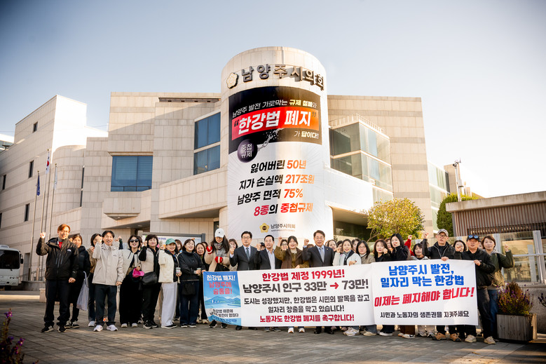 시의회는 28일 오전 시청 광장에서 남양주시 공무직 노동조합 조합원들과 함께 남양주 발전을 가로막고 있는 한강법 폐지 촉구 행사를 열었다고 밝혔다.