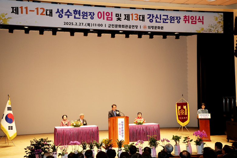 [의령군 세계타임즈=최성룡 기자] 의령문화원은 27일 군민문화회관 공연장에서 300여 명의 문화원 회원이 참석한 가운데 2025년 의령문화원 정기총회 및 제11·12대 성수현 문화원장 이임식과 제13대 강신군 문화원장 취임식을 개최했다고 밝혔다.