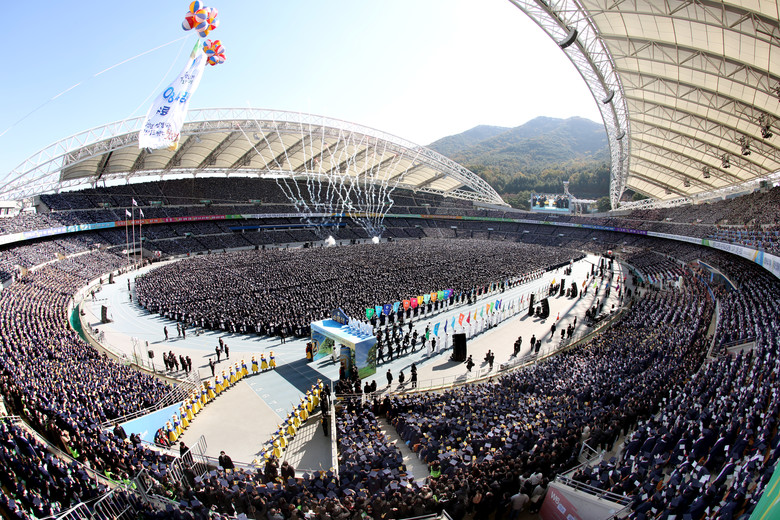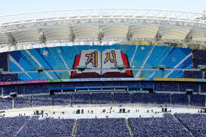 (신천지 예수교 증거장막성전이 11월 12일 대구스타디움에서 개최한 '신천지 12지파 시온기독교선교센터 114기 수료식' 현장, 사진=신천지예수교회 제공)
