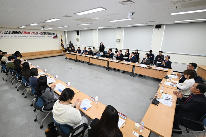 [경남 세계타임즈=최성룡 기자] 경상남도의회가 7일 제2기 대학생 인턴십 사업 오리엔테이션을 개최하고 의회·대학·인턴(학생) 간 3자 협약을 체결하며 사업의 본격적인 착수를 알렸다. 이번 인턴십 사업은 도내 지역대학과의 교류·협력을 통해 의원들의 정책활동을 지원하고, 대학생들에게 의회 체험 및 진로탐색 기회를 제공하는 것을 목적으로 한다.