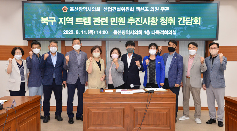 이날 간담회는 북구 지역 트램 2호선 관련 주민들의 고충사항을 해결할 수 있는 방안을 논의하기 위해 마련됐으며 북구 의회 조문경 복지건설위원장, 김정희.박정환.손옥선 의원, 북구 의회사무과 직원, 울산시 관계자 등 9여 명이 참석했다.
