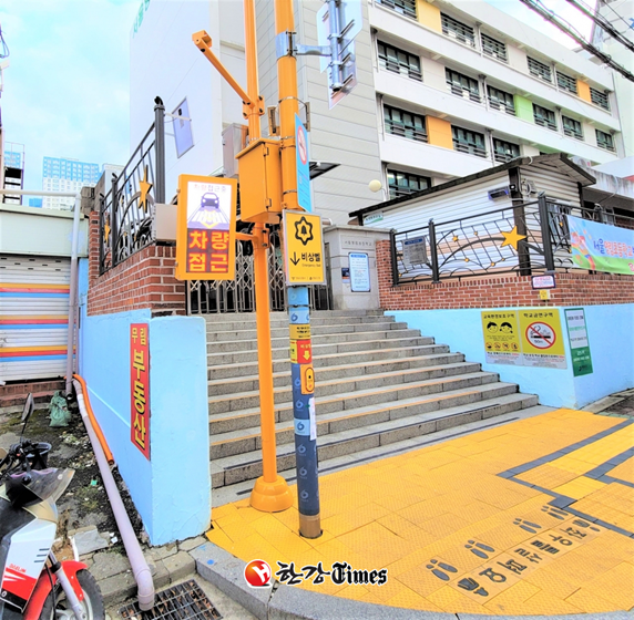 ‘사각지대 스마트 알리미’ 시스템은 ‘우회전 보행자 주의표지판’과 함께 차량 또는 보행자의 접근 상황을 보행자나 운전자에게 문자나 그림으로 알려주게 됨으로써 시범 설치 중인 영등포구는 많은 호응을 얻고 있다.