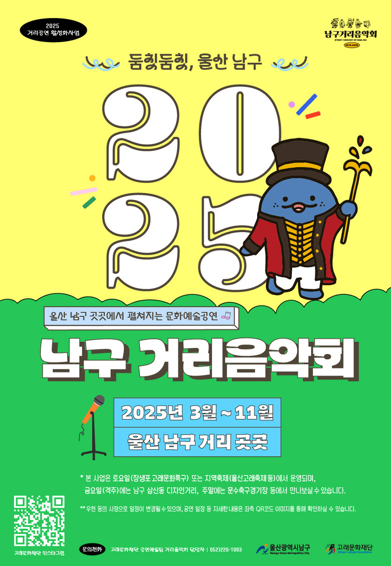 또한, 장생포 고래문화특구와 남구 문화관광 활성화에 이바지해 울산 거리공연의 대표 브랜드가 되도록 할 계획이다.