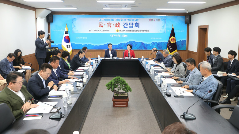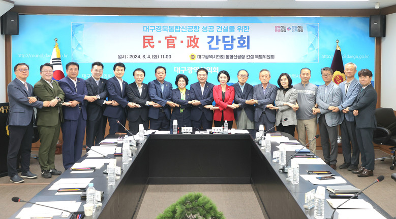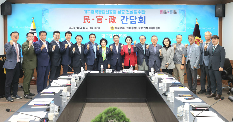 [대구 세계타임즈=한윤석 기자] 대구시의회 통합신공항건설특별위원회(위원장 박소영)는 6월 4일(화) 오전 11시 시의회 2층 회의실에서 대구시, 통합신공항 대구시민추진단 관계자와 함께 ‘성공적인 신공항 건설을 위한 민·관·정 간담회’를 개최했다고 밝혔다.