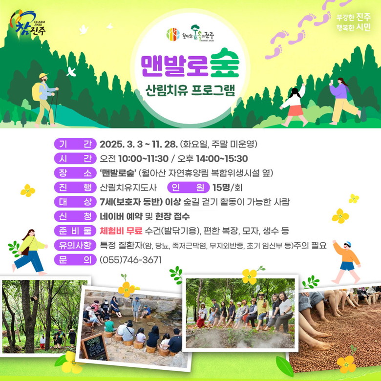 [진주시 세계타임즈=최성룡 기자] 진주시는 3월부터 월아산 숲속의 진주에서 산림치유 프로그램을 주중 상설 운영한다.