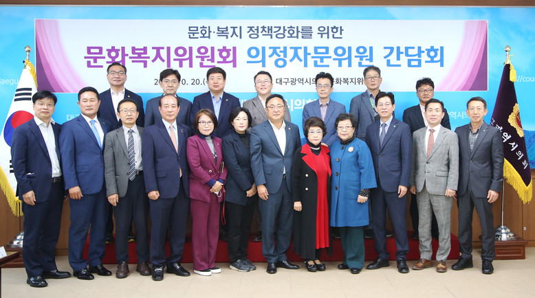 [대구 세계타임즈=한성국 기자] 대구광역시의회 문화복지위원회(위원장 김재우)는 2022년도 행정사무감사 및 2023년도 예산안 심사를 앞두고 10월 20일(목) 오전 10시 30분 시의회 2층 간담회장에서 문화복지위원회 의정자문위원과 소속 의원 등 21명이 참석한 가운데 문화복지 정책강화를 위한 간담회를 개최했다.