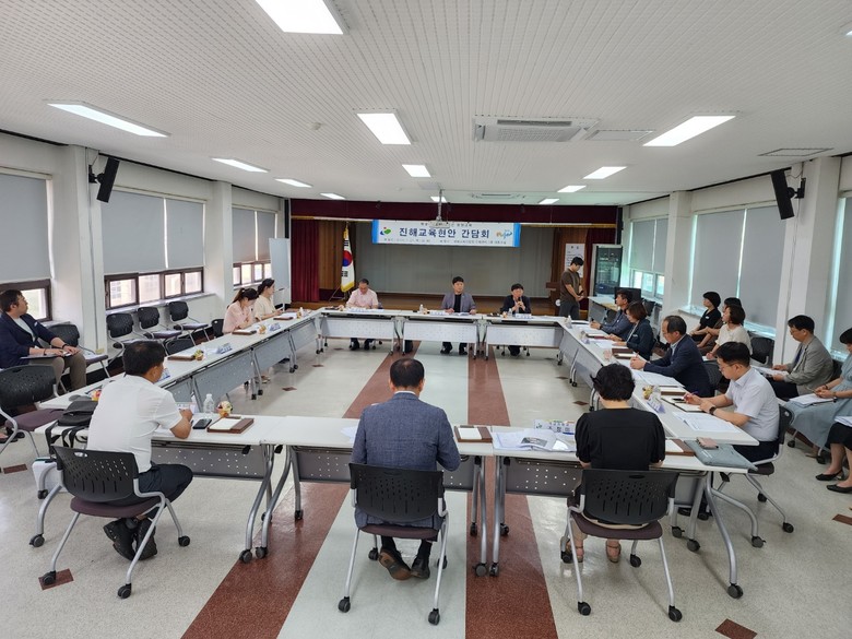 이날 간담회의 주요 내용은 ▲ 어린이통학로 안전문제 ▲ 과밀학급 해소방안 ▲그린스마트 학교 추진현황 ▲통학버스 관련 민원 ▲ 나래울학교 신설 추진 현황 ▲ 진해신항고등학교 신설 관련 ▲ 진해통합중학교 신설 추진현황 ▲ 진해구 교육환경 개선사업 운영현황 ▲진해여고 100주년 기념관 설립 등 다양한 교육현안의 점검하였으며 진해구 시도의원 및 교육청 관계자들과의 소통을 통해 문제 해결방안을 모색하는 뜻깊은 시간을 가졌다.