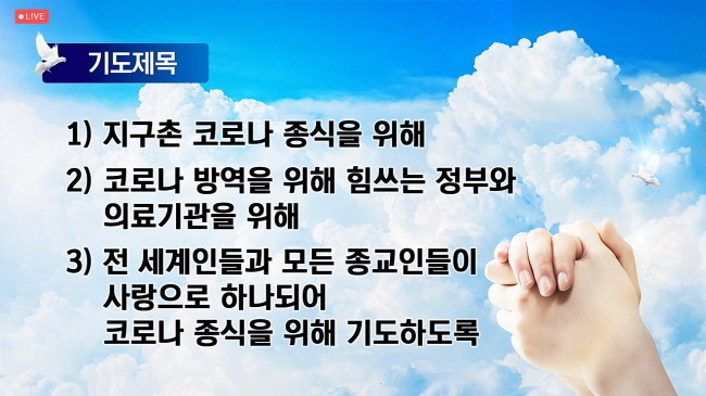 [세계타임즈 곽중희 프리랜서 기자] 신천지예수교회의 제안하에 전세계 코로나19 종식 합심 온라인 기도회가 열렸다.