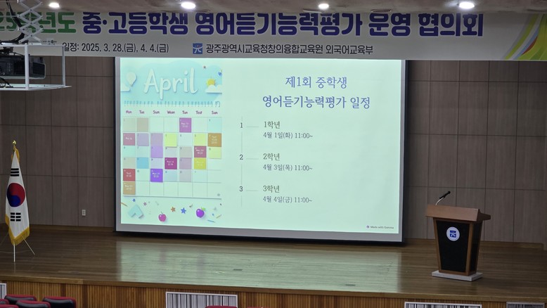 또 전국 15개 시‧도교육청이 공동 주관하는 ‘제1회 전국 중·고등학생 영어듣기능력평가’에 대해서도 설명하는 시간을 가졌다. 이번 평가는 지난 1일부터 4일까지 중학생을 대상으로 실시됐으며, 고등학생은 오는 8일부터 10일까지 진행될 예정이다.