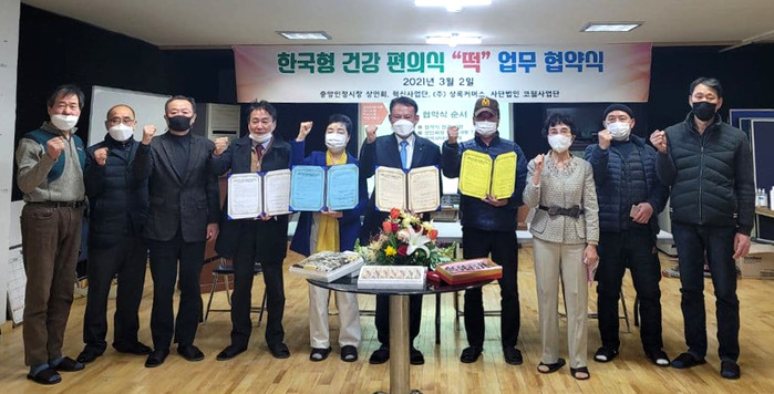 [세계타임즈=박정민 기자] 한국형 건강 편의식인 '떡'을 중심으로 안양중앙인정시장 혁신사업단 및 상인회, (사)유니코 문화교류협회 코웰사업단, (주)상록커머스가 공동 업무협약을 맺었다.