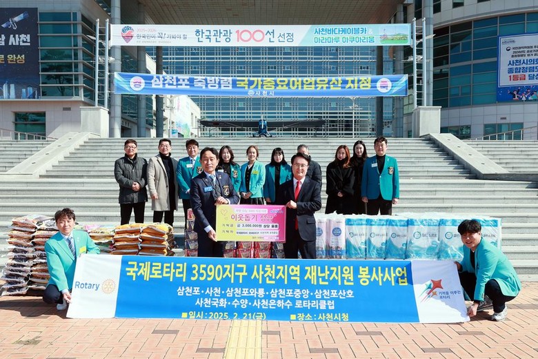 박동식 시장은 “모두가 힘든 시기에 소외된 이웃과 함께 나누고픈 뜻을 모아 기탁해주신 국제로타리 3590지구 사천지역 8개 클럽 회원들에게 깊은 감사를 드리며, 기부해주신 물품은 어렵고 힘든 이웃들에게 잘 전달되도록 하겠다”고 말했다.