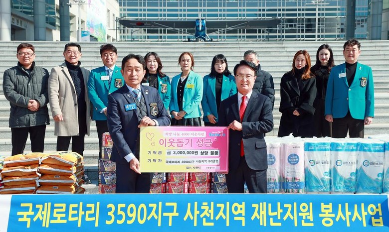 [사천시 세계타임즈=최성룡 기자] 국제로타리 3590지구 사천지역 8개 클럽(대표 탁종용)은 21일 관내 저소득 계층을 위해 써달라며 희망나눔 4000 이웃돕기 물품(환가액 300만원 상당)을 기탁했다.